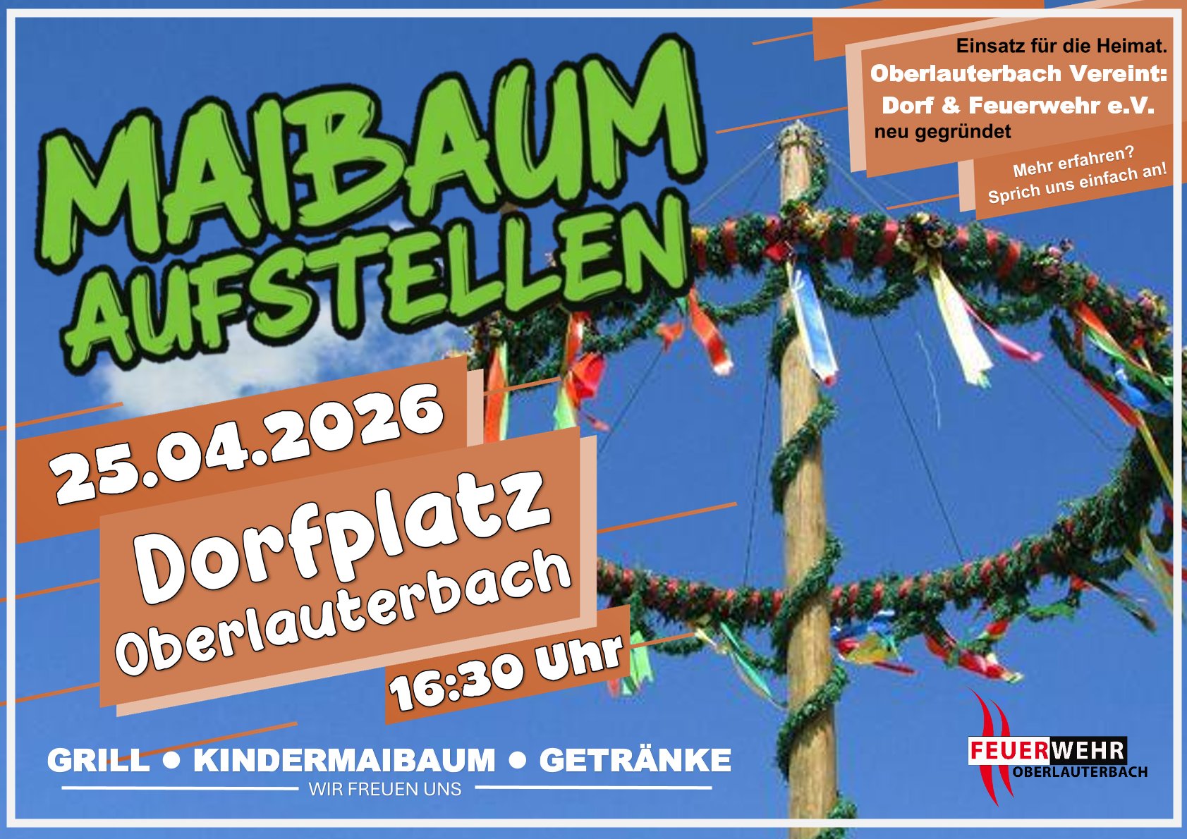Veranstaltungshinweise Maibaumaufstellen und Höhenfeuer 2026 Wir laden euch auch dieses Jahr wieder herzlich zum Maibaumaufstellen und zum Höhenfeuer ein!