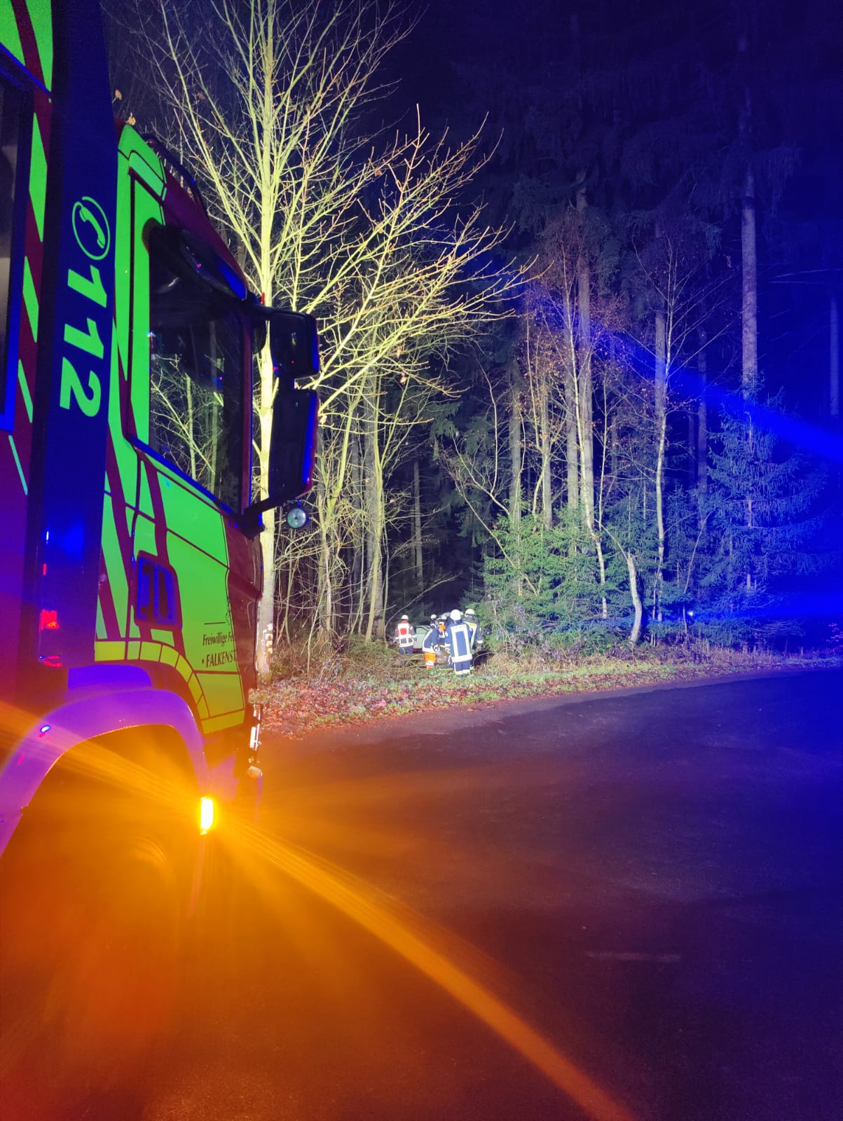 In der Nacht zu dritten Advent wurden wir auf die Verbindungsstraße nach Falkenstein zu einem Verkehrsunfall alarmiert. Ein PKW war von der Straße abgekommen und ca. 50m tief im Wald liegen geblieben. Die Fahrerin konnte sich selbständig aus dem Auto befreien und wurde bei unserem Eintreffen von einem qualifizierten Ersthelfer betreut. Wir unterstützten sofort die Versorgung der Patientin bis zum Eintreffen des Rettungsdienstes und sicherten die Einsatzstelle ab. Die Kameraden aus Falkenstein übernahmen die Sicherung der Fahrzeuges. Im weiteren Verlauf wurde noch mit der Motorsäge ein querliegender Baum entfernt um die Bergung des Fahrzeuges zu ermöglichen. Etwa zwei Stunden nach der Alarmierung was der PKW verladen und wir konnten den Einsatz beenden. |
